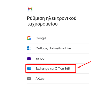 Στην επόμενη καρτέλα επιλέγουμε το Exchange και Office 365.