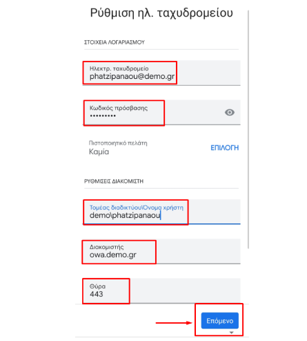 Όπου «phatzipanaou@demo.gr” βάζουμε το εταιρικό μας mail.