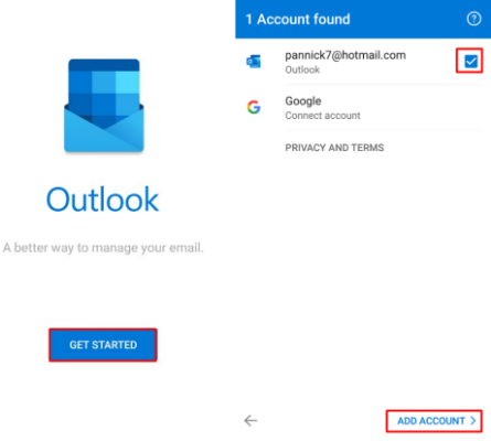 Ανοίγοντας την εφαρμογή πατάμε το πλήκτρο get started και μας εμφανίζει λογαριασμούς που έχει ήδη ανιχνεύσει από την συσκευή. Εκεί τους από-επιλέγουμε και στο σημείο που είναι η επιλογή ADD